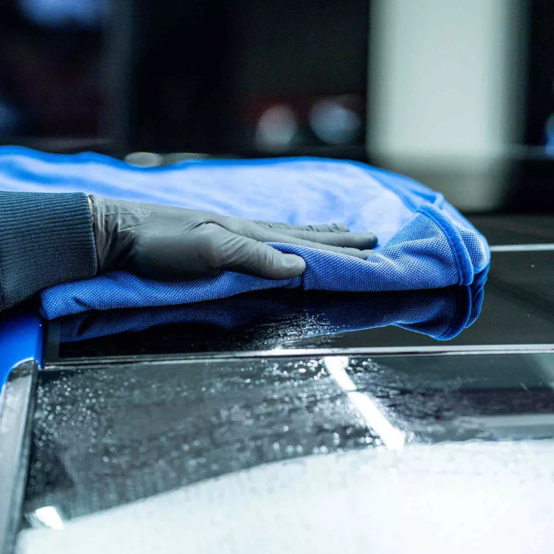 - Entfernen Sie die Rückstände mit einem Mikrofasertuch oder einer wasserlosen Reinigungstechnik.