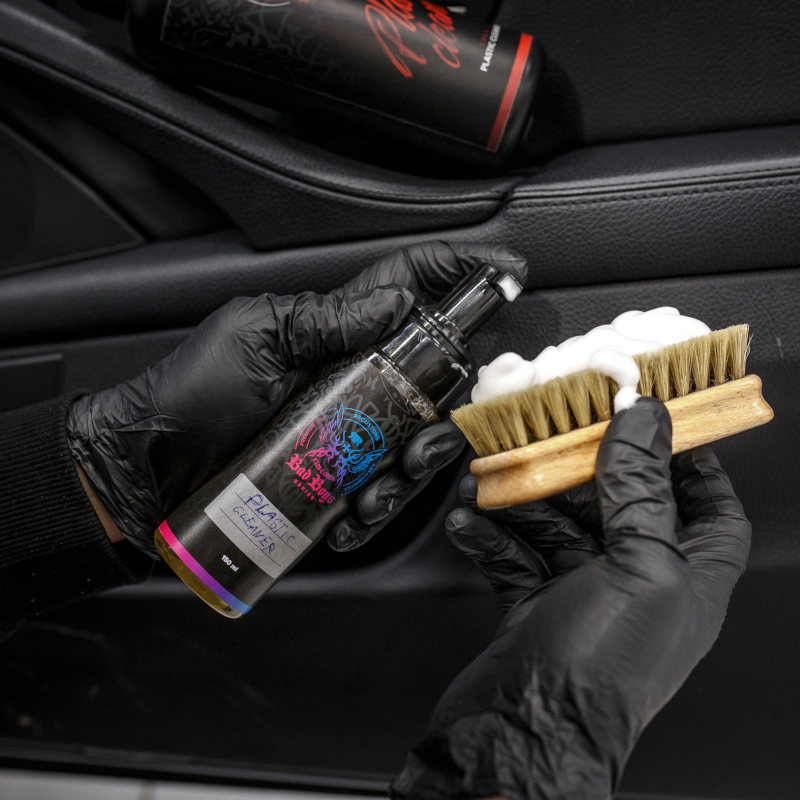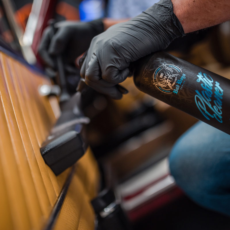 - bei Verwendung von Interior Dressing BadBoys auf einer Kunststoffoberfläche einige Minuten warten, bis das Präparat vollständig verdunstet ist